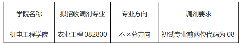 农业工程 082800 (不区分方向) 调剂系统开通时间: 2023年4月22日21:00