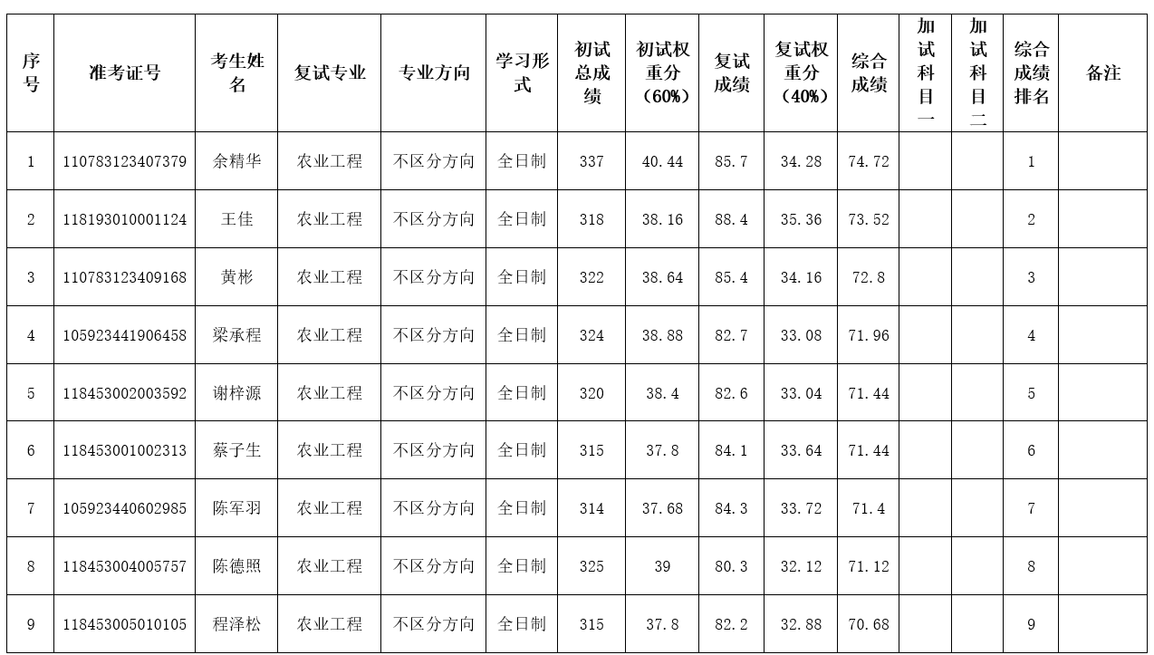 仲恺农业工程学院2023级硕士研究生复试成绩汇总表(调剂第一批)-3044am永利集团官网