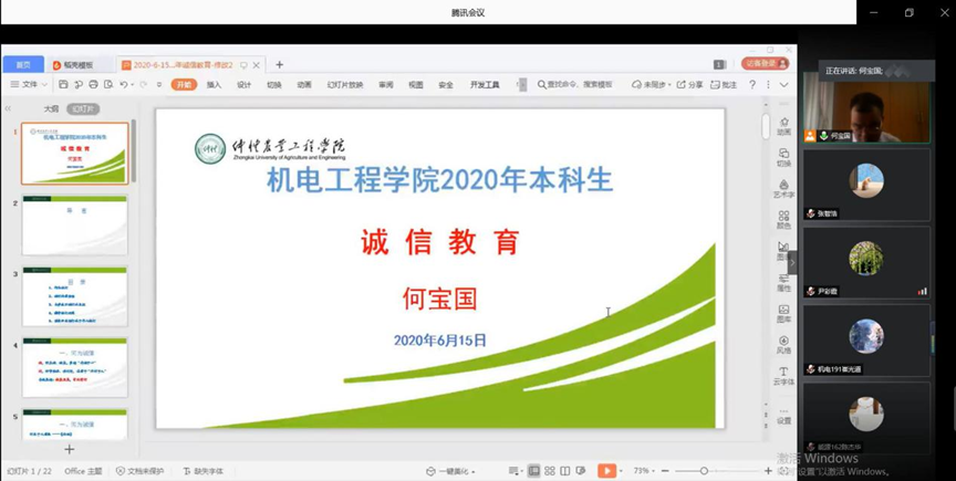 为提高广大同学对国家助学贷款政策的认识度,强化毕业生诚信还贷意识,3044am永利集团官网于6月15日下午,在腾讯会议召开“2020年本科生诚信教育大会”。学院党总支副书记何宝国、辅导员尹彩霞、郑攀、熊伟、王澜珂四位老师参会,各年级申请助学贷款学生参加此次会议。本次会议由何宝国副书记主持。