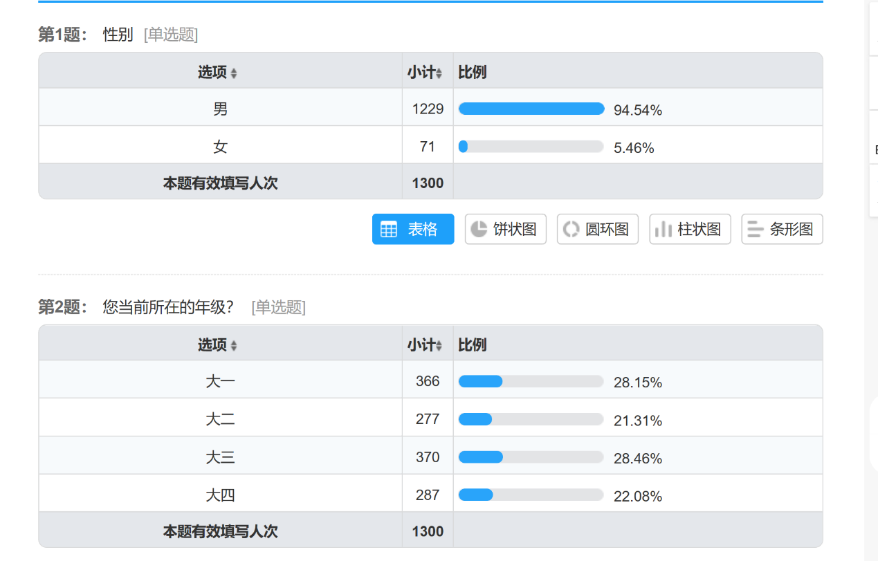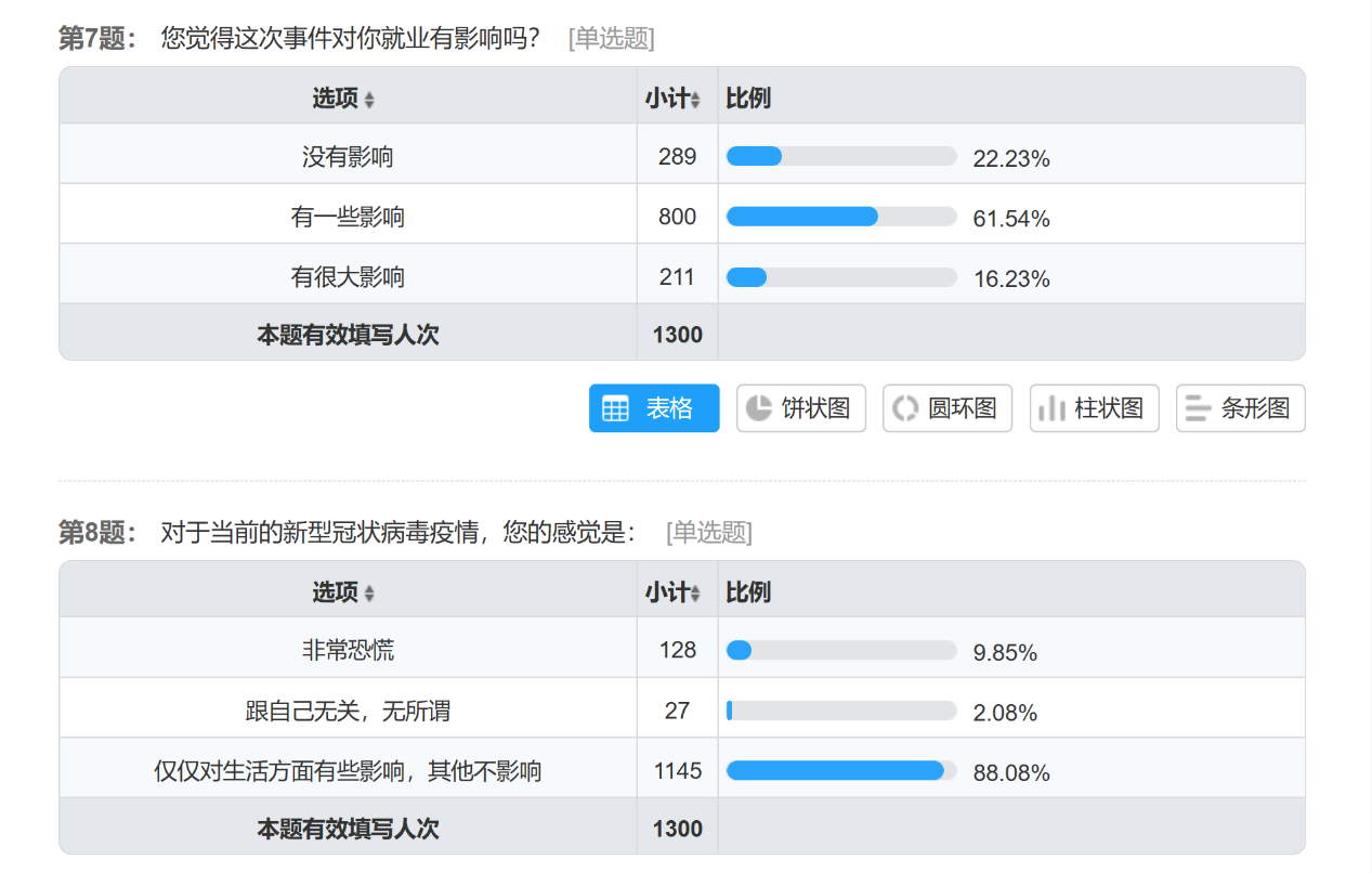 本次思想动态调研采用发放网络电子问卷的形式进行,问卷内容涵盖了参与调查学生的基本情况、对疫情防控的态度、对新冠病毒的认知、疫情对自身学业和就业的影响,对延期开学的态度、以及学生需求等六个方面,从多维度了解学生的疫情防控期间的思想学习和生活状况。调查得到了学生的积极响应,全院1300名同学提交了有效问卷,参与率91.9%(学院总人数1415)。