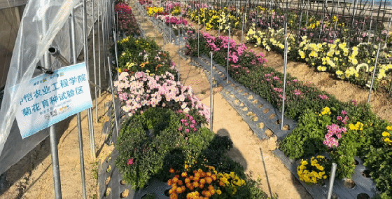 随后,研究生们参观了科创中心的实验农田,这里有仲恺农业工程学院菊花育种试验区,同学们亲眼见证了精准农业技术如何优化作物生长环境,提高资源利用效率以及通过智能化管理减少人为误差,从而显著提升作物产量和品质。