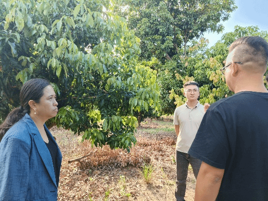 会后,在工作队的带领下,团队成员赴荔枝种植基地及香水柠檬种植基地实地考察,了解果树长势并就现存问题提出建议,如柠檬树已出现黄叶现象,必须及时向果树施加肥料,并且需抓住国庆黄金假期,使香水柠檬集中上市,更好地发挥其经济价值。