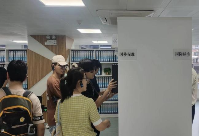 到达活动现场,研究院讲解员对大家的来访表示欢迎,并提醒大家在参观过程中的注意事项。在讲解员的带领下,同学们从一楼大厅观看标准化历史及发展现状,一直到八楼,每层楼都珍藏及展示不同的标准化体系,有国际国内标准、企业标准、团体标准、地方标准、行业标准、质量标准、电商服务标准等等,各行各业各方向的标准应接不暇,同学们被这些琳琅满目的标准深深吸引。