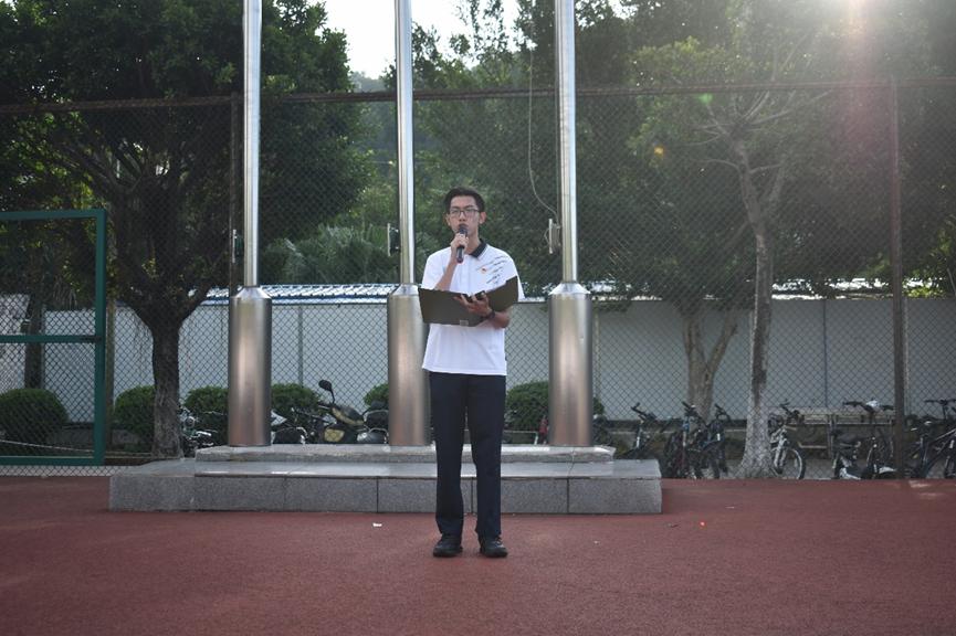 来自能源193班的学生代表郭霖威结合自己的日常学习、工作和生活作国旗下的发言,他以“青春正当时,一起向未来”为题,向在场的同学们谈了自己在党史学习中的深刻体会。他谈到,我们青年一代大学生要用自己的青春肩负起时代赋予的责任。身为新时代涉农高校的学子,身为仲恺人、机电人,我们要传承弘扬廖何精神,勇担使命。最后,他向同学们倡议,扛起“强国有我”的青春之责,做思想长河的奋楫者;树立“青春之我”的奋斗之旗,做科技创新的践行者;练就斗争路上的“真功夫”,做乡村振兴的参与者、推动者。