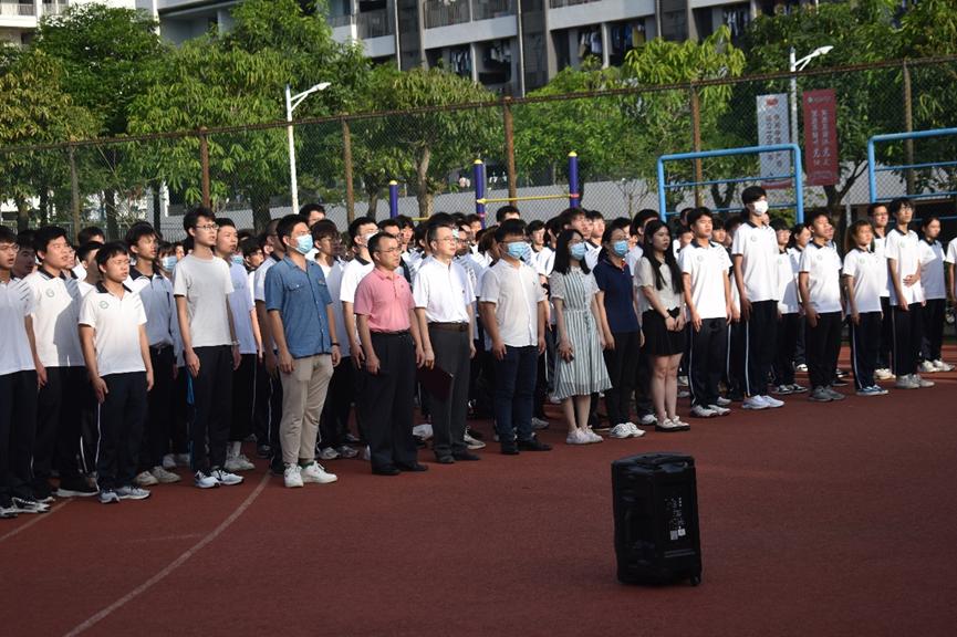 在雄壮豪迈的国歌声中,鲜艳的五星红旗冉冉升起。全体师生肃然而立,共唱国歌,向缓缓升起的国旗行注目礼,送上对祖国最深切的祝福。