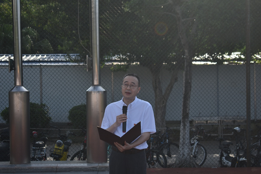 丁力行院长以“喜迎二十大,一起向未来”为题做国旗下的讲话。他首先预祝2022届全体毕业生毕业顺利,学业有成,前程似锦。接着,他回顾了过去一年里,我们国家在建党百年盛典、航天科技、冬奥体育和文化等领域取得的一系列成就,激励同学们用青春砥砺梦想,积极面向未来,迎接新的挑战。随后他特别强调,2022年,又将是不平凡的一年。党的二十大将要召开,这是党和国家政治生活中的一件大事,也是让我们更好走向未来的新节点。刚刚度过百年华诞的中国共产党,面对百年未有之大变局,如何在总结历史经验的基础上,迎接新挑战,建立新功绩,带领中国人民面向未来,开拓进取,如期实现中华民族伟大复兴的历史使命?相信党的二十大,将给出对历史负责、对人民负责的答案。最后,他希望同学们做到强健体魄、胸怀祖国、奋斗不息,一起向未来。