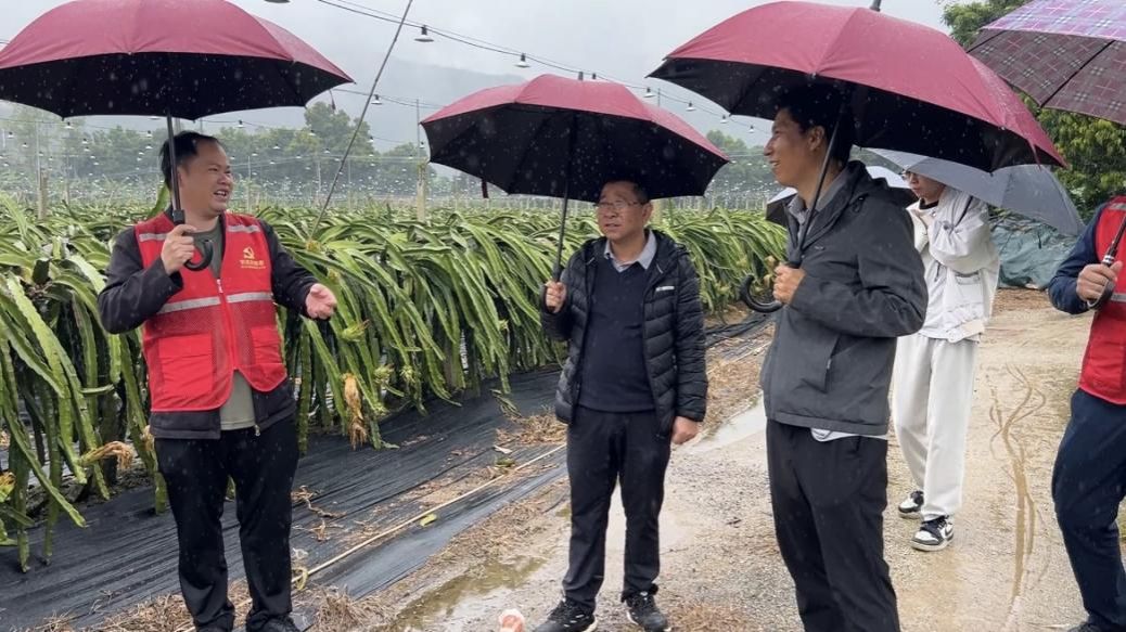 随后,特派员团队来到九市镇辣头村实地调研与精准帮扶,该村70亩火龙果基地采用彩色灯诱虫授粉技术,种植效益显著,但仍面临高温日晒引发的烂枝问题,以及夜蛾、蜗牛等病虫害侵袭。村民提到,杀虫剂配制不精准导致药效不足,部分害虫已产生抗药性,而无人机喷药成本高、农民接受度偏低。特派员建议引入精准施药设备,结合生态防控技术,减少农药依赖,提升果实安全性。